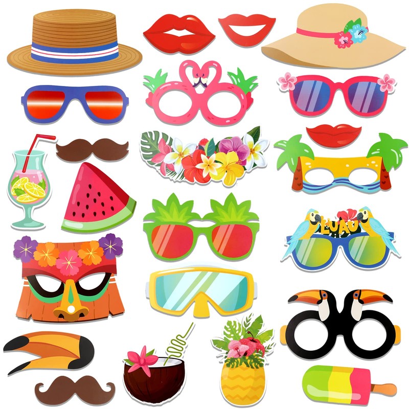 - Hawaii Photo Booth Props Set: Package include 32 pieces summer photo props paper card board and 32 pieces wood stick and enough quantity glue tape, various Hawaii tropical themed pattern design for you to choose from and share with your friends and family, take some photos and selfies full of funny style and summer flavor!