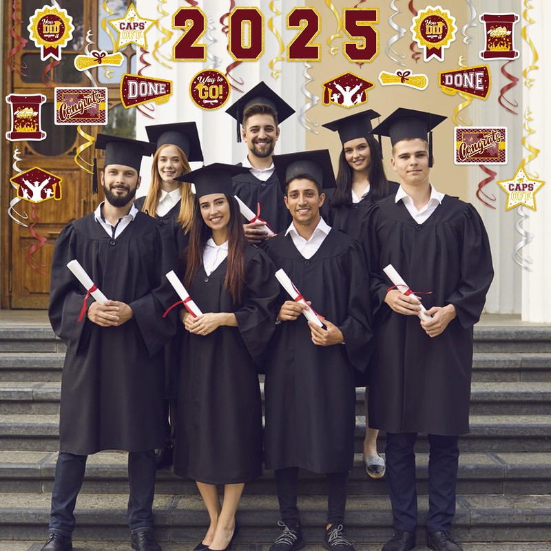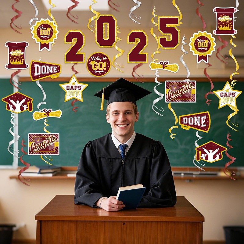 - PACKAGE INCLUDED - You will receive 32 pieces of 2025 graduation hanging swirls. Design with variety of styles, such as diplomas, badges, bachelor's caps and "Class of 2025" "You Did It"and "Congrats Grad"etc. Let your graduation party leave a deep impression on everyone!