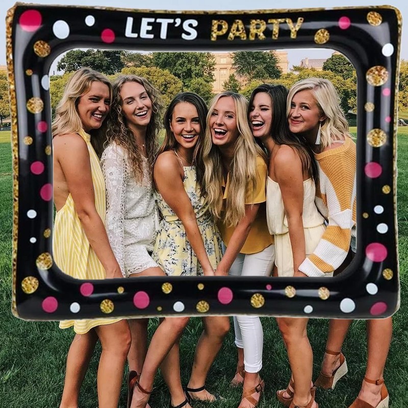 - Packing List: You will receive 1 inflatable photo frame props and 31 paper shooting props with corresponding wooden sticks and adhesive paper.