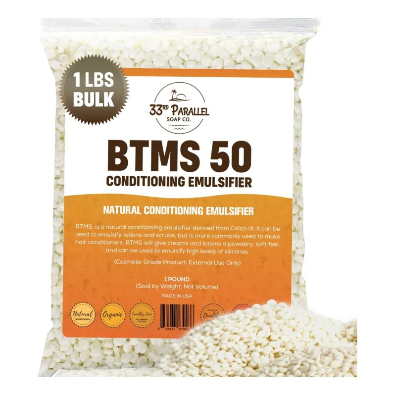 PRODUCTO: 33º PARALELO | BTMS 50 (1 LBS 16 Oz) Emulsionante acondicionador | 100% derivado de plantas naturales | Acondicionador emulsionante de alcohol cetearílico de metosulfato de behentrimonio | Producto de EE.UU. (1 LIBRA)