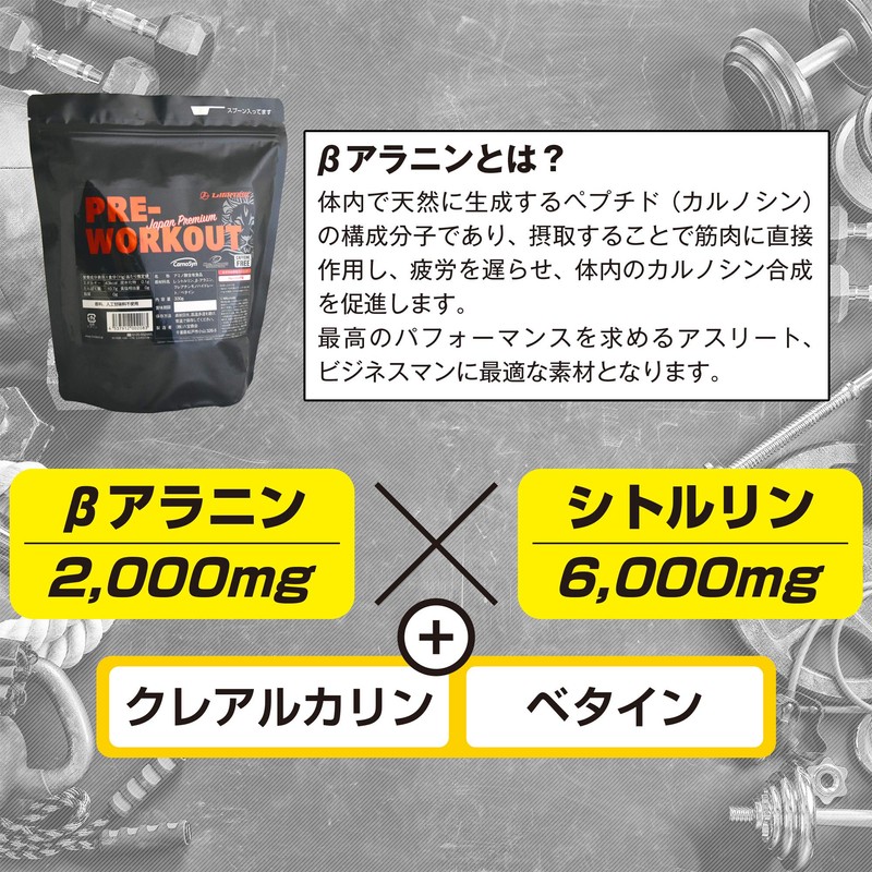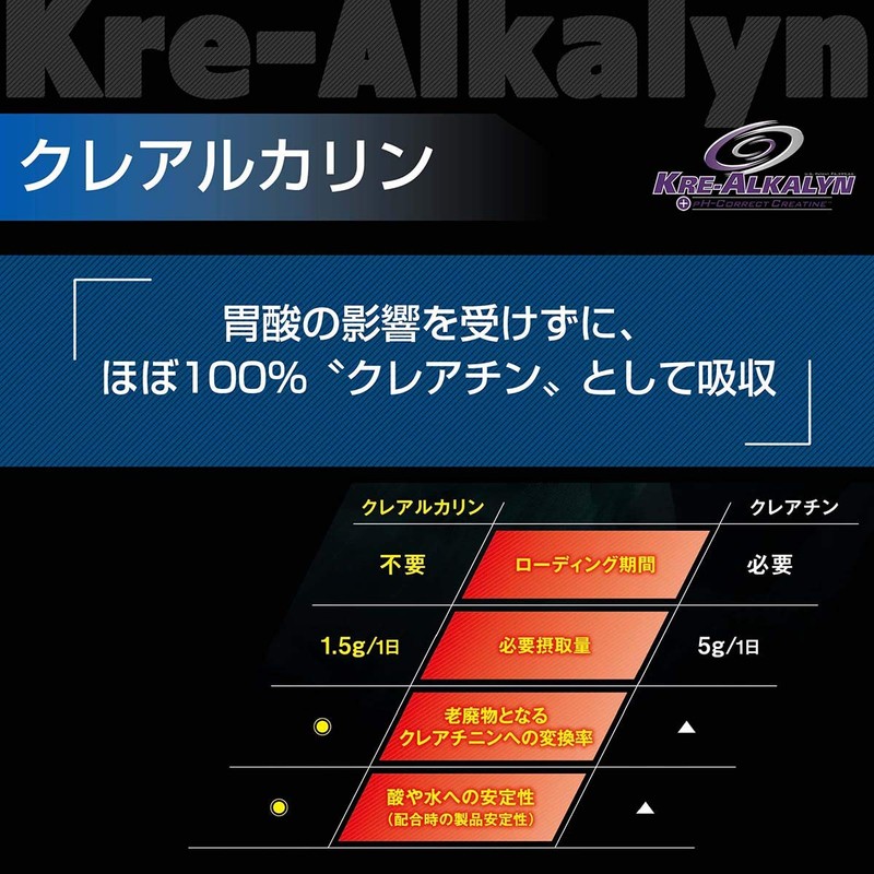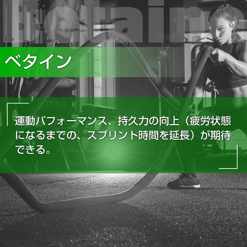 - 配合:βアラニン/L-シトルリン/ベタイン/クレアルカリン