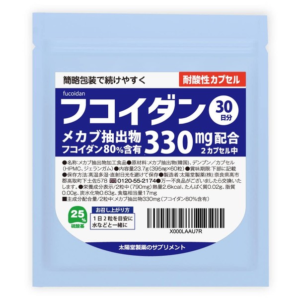 - フコイダンとは、海藻の中でも褐藻類(ワカメのほか昆布、モズクなど)に含まれます。お召し上がり方:1日1カプセルを目安にお水などでお召し上がりください。(2カプセルで330mgのメカブフコダイン)