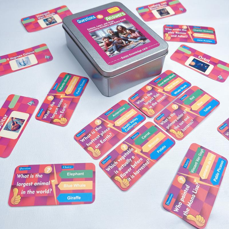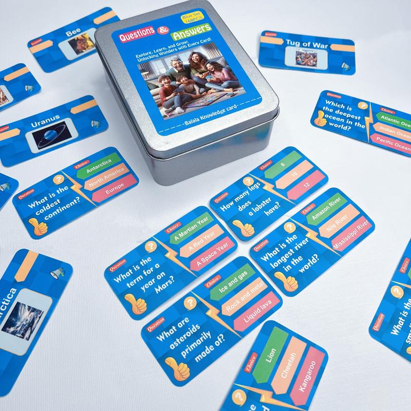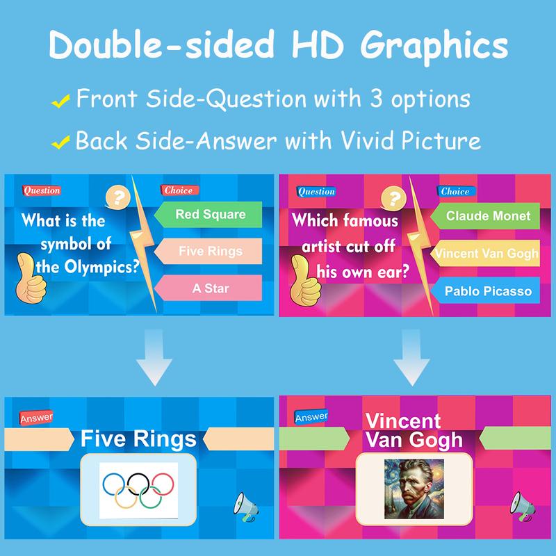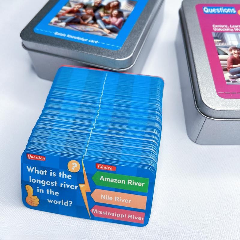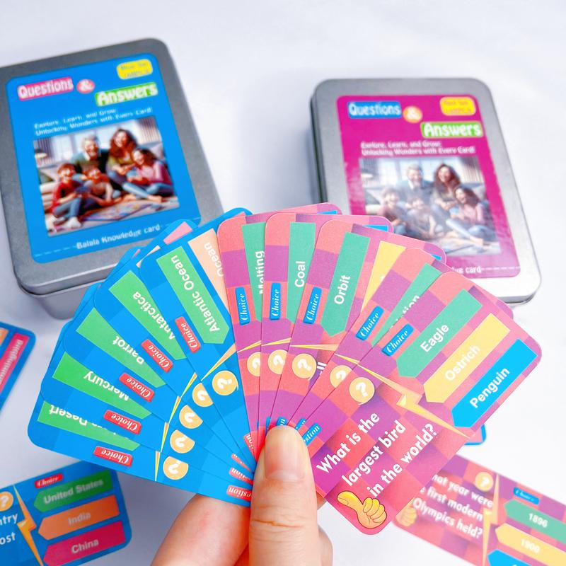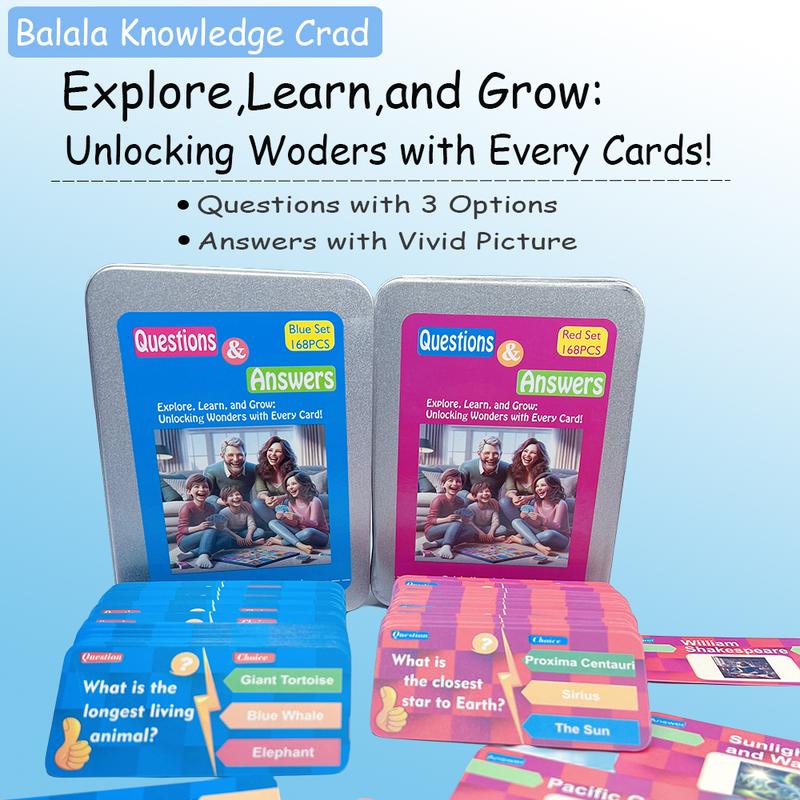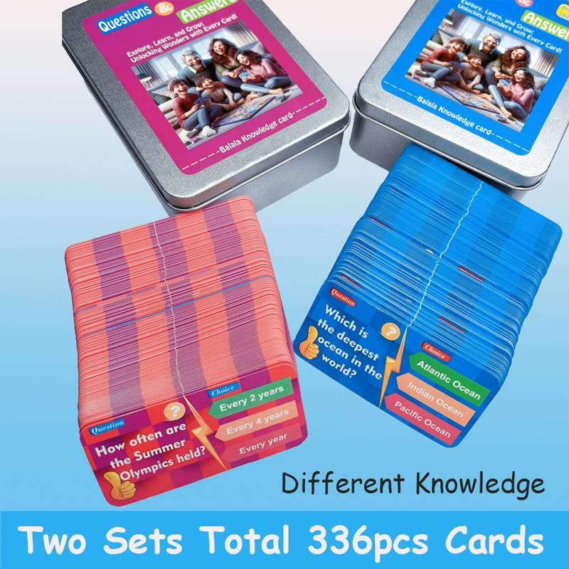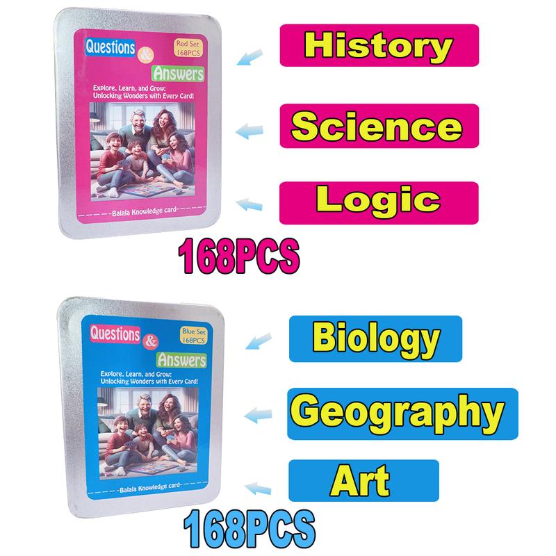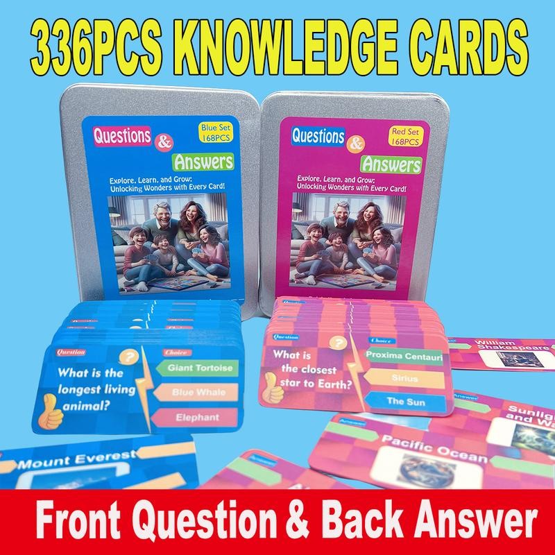 Enhance learning and have fun with these 336 Knowledge Cards! This set includes 168 blue cards and 168 red cards, each with a front question and back answer featuring vivid pictures. Perfect for family interactive playtime or classroom learning, these cards are sure to improve reaction capacity.