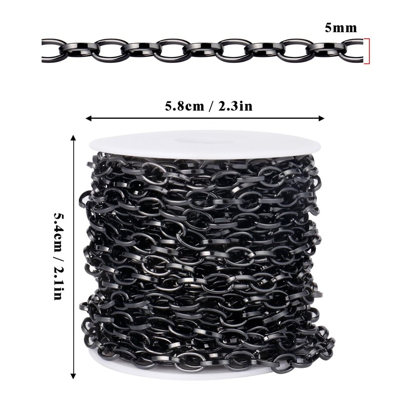 33FT Black Paperclip Chains Spool, 5mm Aluminum Link Chain Roll Bulk for DIY Crafts Jewelry Making