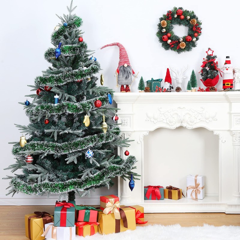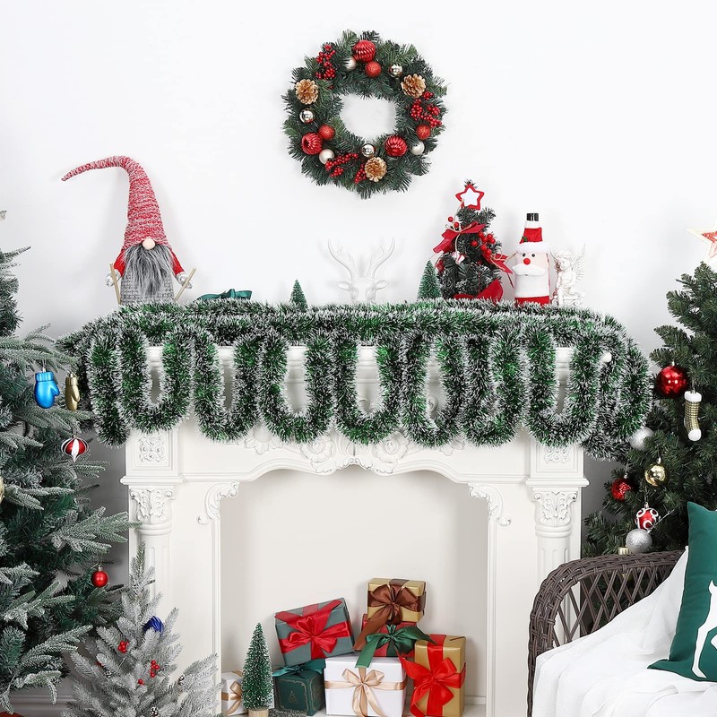 - 🎄Más gruesa y esponjosa: guirnalda de Navidad con un hermoso aspecto grueso y esponjoso. Cada uno mide 4 pulgadas de ancho. Proporciona un color brillante y cobertura para la decoración de tu árbol de Navidad.