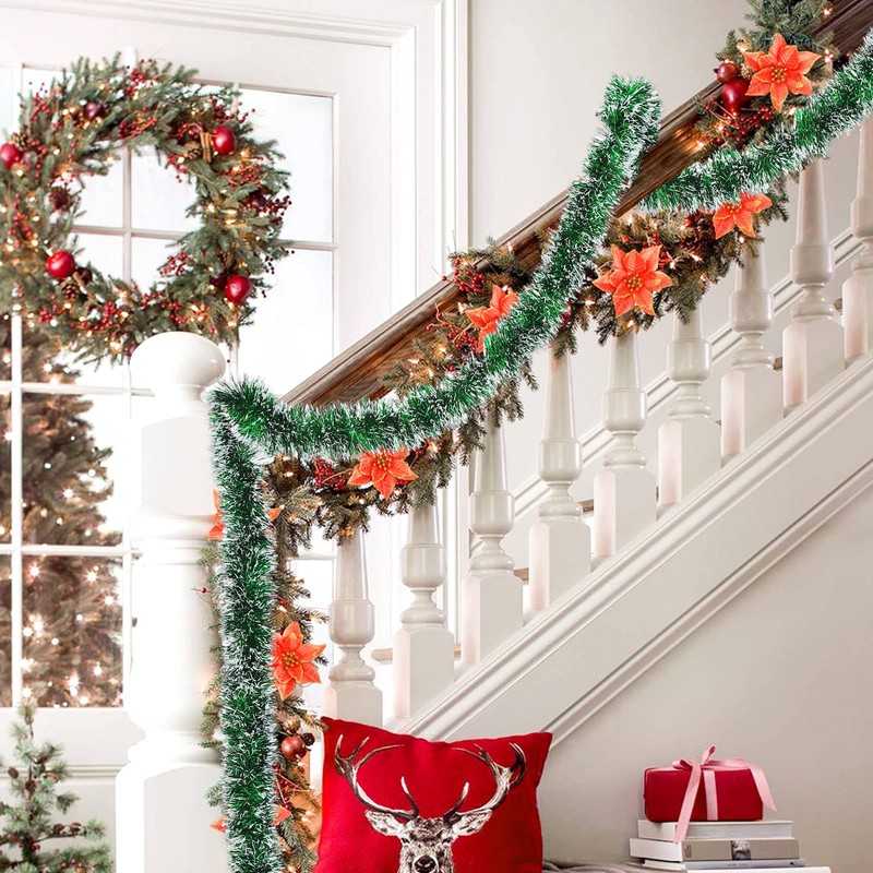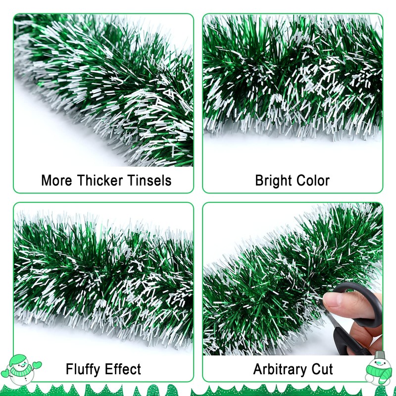 - 🎄Duradero y resistente: fabricado con espumillón de alta calidad con un brillo lujoso. Decora tu hogar, oficina o aula con hermosos centros de mesa, corona brillante o envuelve alrededor de rieles de escalera en cascada por los escalones para un glamour extra