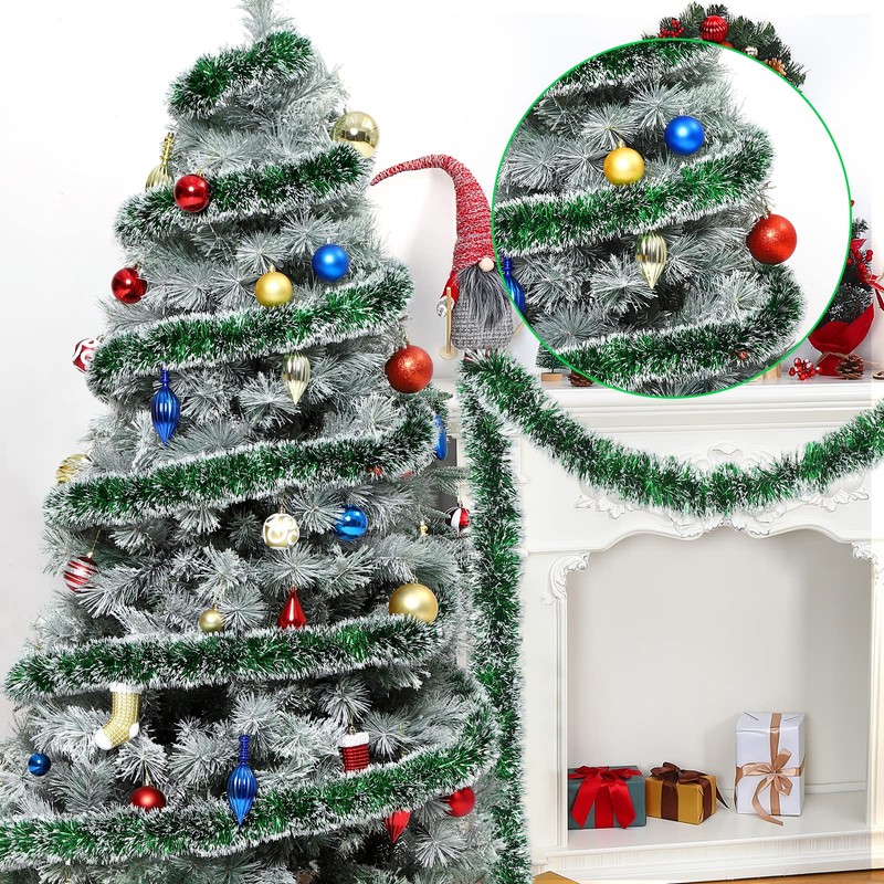- Guirnalda de oropel de Navidad: total de 33 pies, guirnaldas de oropel de Navidad, guirnaldas de oropel suaves y de moda, reflejando el brillo para añadir al ambiente festivo.
