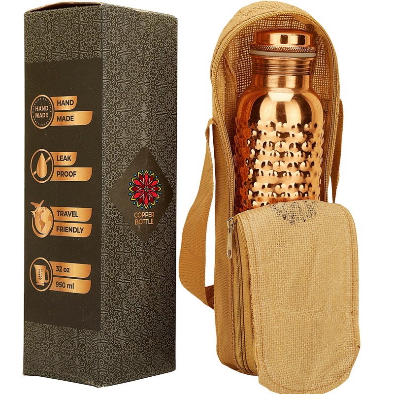 - PERFECT STYLE AND QUALITY: An Easy-To-Use, Leak-Proof Bottle. Wear It Confidently To The Gym, Yoga Class, Work And School, Even Upside Down! For An Added Style Statement, Choose A Beautifully Enamelled Or Etched Pattern. The Inside Of The Patterned Models Is Also Made Of Pure Copper - Your Health Is Important To Us. Easy To Clean