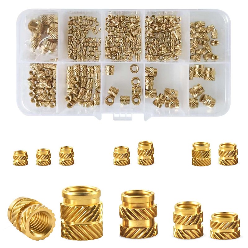 340 Pcs Threaded Inserts for Plastic, M2 M2.5 M3 M4 M5 M6 Heat Set Inserts Assorted, Brass Knurled Nuts, Threaded Insert Heat Embedment Nut for 3D Printing Components