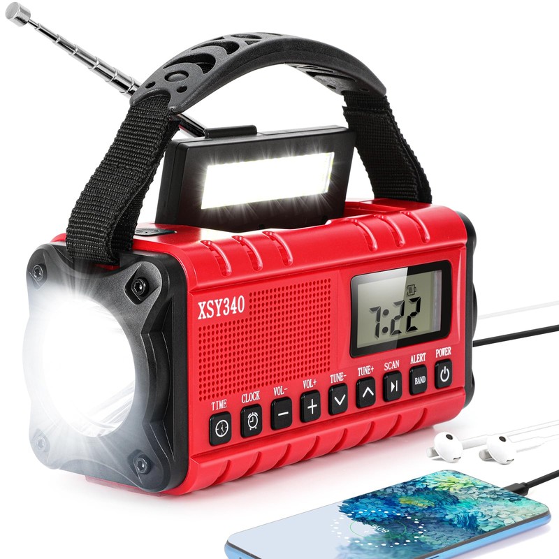 - Weather Radio,10000mah Portable Power Bank with Solar Charging, Hand Crank Emergency Radio,NOAA Weather Alert, SOS Strobe Flashlight, Digital AM/FM Portable Radio with Clock,Rechargeable Battery