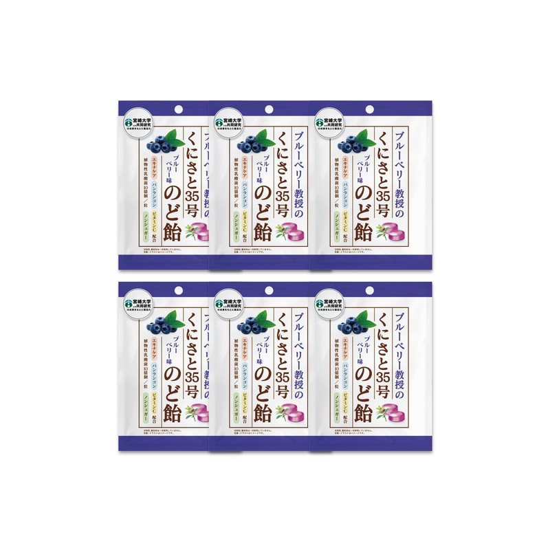 【 甘味料 砂糖 不使用 】くにさと35号のど飴 のど飴 喉飴 飴 ノンシュガー エキナケア のどあめ 糖類ゼロ (宮崎大学と共同開発) バンランコン ボイスケア 乳酸菌 ビタミンC 個包装 ブルーベリー味 6袋