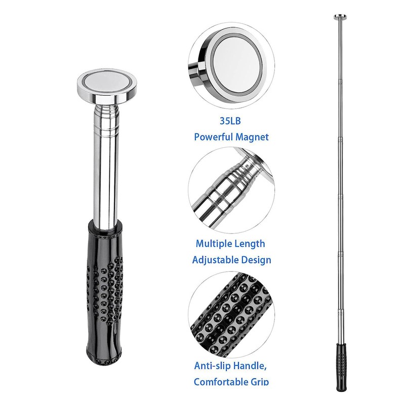 • [Heavy-Duty Magnetic Pull] Equipped with a robust magnet that can pull up to 35 lbs, this tool is not just a magnetic pick up tool; it's a heavy-duty solution for construction tools and more. The magnet's strength is superior, capable of holding small metal parts firmly without wobbling, ensuring a secure grip every time. Whether you're in the middle of a critical repair or a meticulous assembly, the reliability of our magnetic telescoping pick-up tool guarantees that your small metal tools are always within reach, enhancing your productivity and precision.