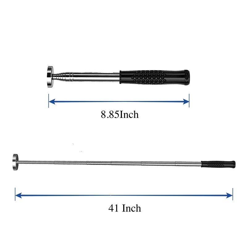 • [Extended Reach] Our magnetic telescoping pick up tool extends from 9 to 41 inches (230-1035mm), providing unparalleled access to hard-to-reach areas. This extendable magnet pickup tool allows you to effortlessly retrieve small metal tools and parts without straining or risking injury. No more scrambling to reach dropped bolts or screws. With our telescopic magnet, you can easily access those tricky spots under machines, behind walls, or in tight engine compartments, ensuring a safer and more efficient workflow.