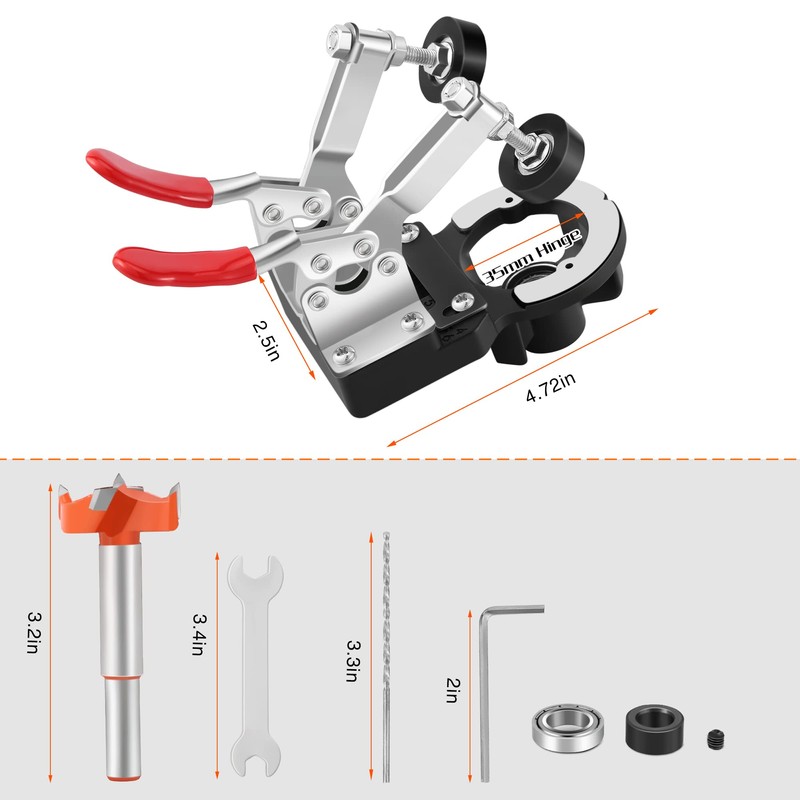 - Suitable for most 35 mm housing hinge devices, with an adjustable opening depth of 10-15 mm and adjustable drill edge spacing of 3-7 mm.