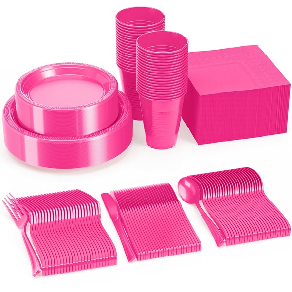 - 【What's Included】Ideal for 50 guests, this set includes 50 9" Cerise plastic dinner plates, 50 7" Cerise dessert plates, 50 12 oz Cerise plastic cups, 50 13" Cerise napkins, 50 of each - 7.5" Cerise plastic spoons, Cerise plastic forks, & Cerise plastic knives. Made from strong materials, they are sure to hold up well for all your party needs.