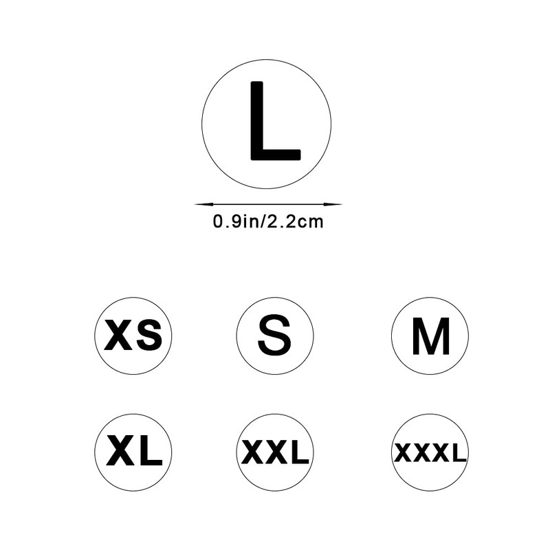 - Size:Each round label measures 0.9 inches (2.2 cm) in diameter,7 sizes (XS,S,M,L,XL,XXL,XXXL),1 roll for each size,easy peel and stick.