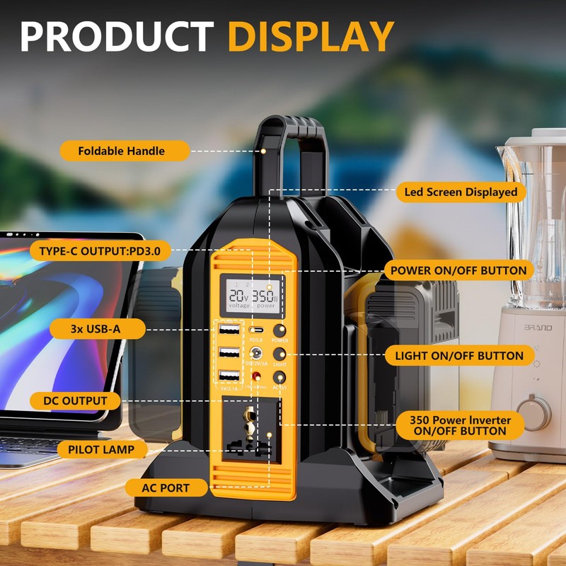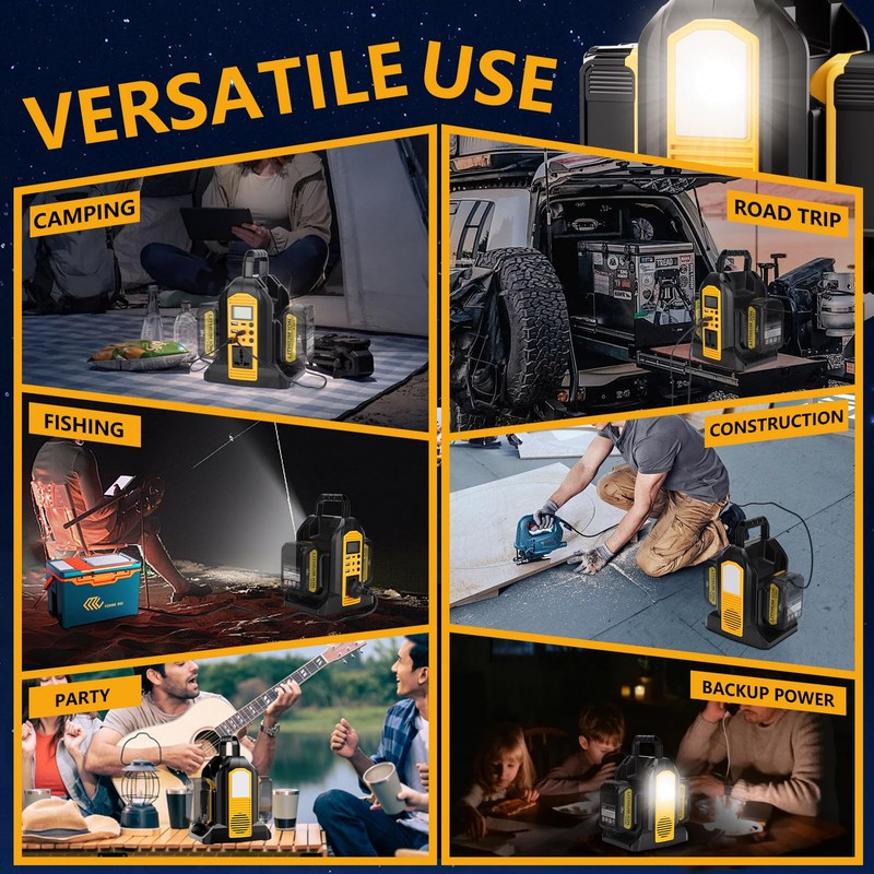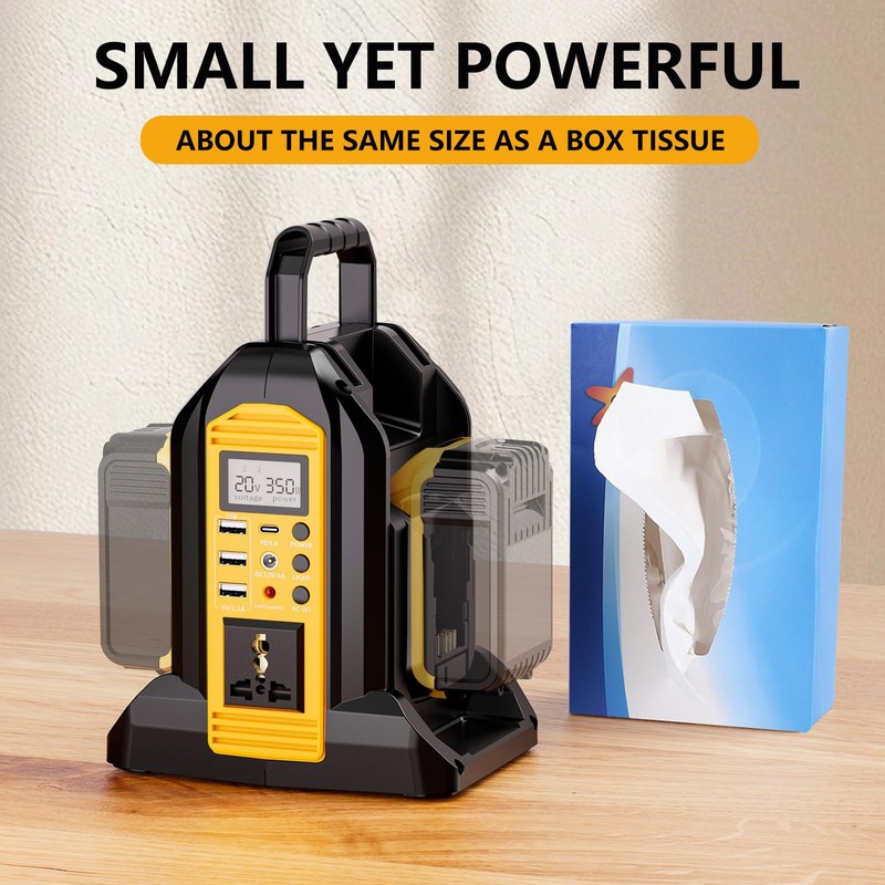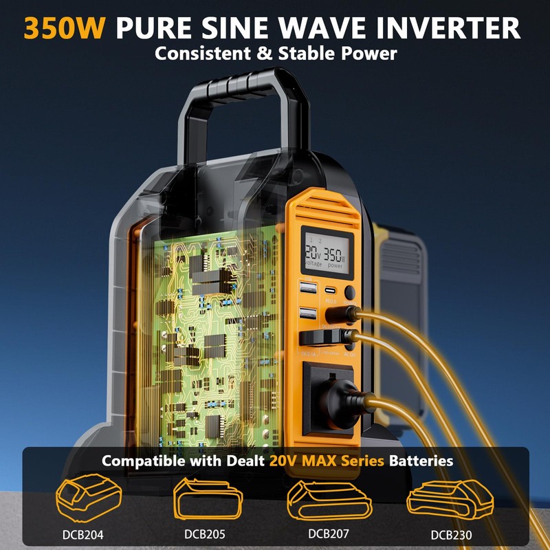 - 【Pure Sine Wave Inverter】 - Our power inverter delivers consistent and stable power, and efficiently transforms 20V DC from DeWalt 20V/60V batteries to 120V AC, Providing reliable power for various devices during outdoor activities.