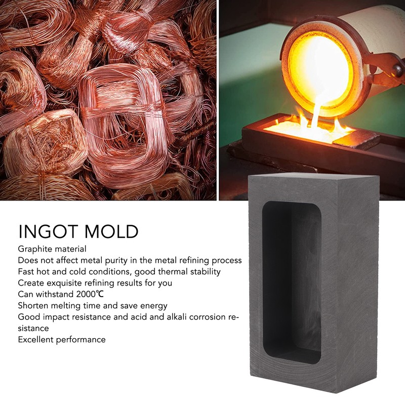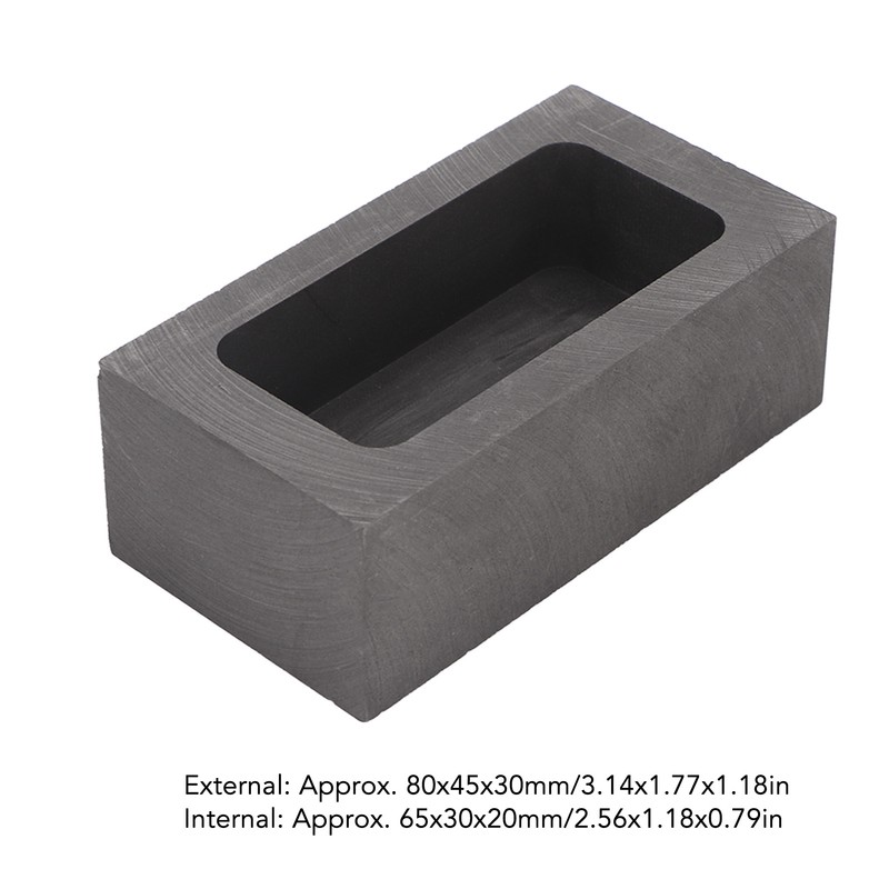 1、GRAPHITE: Graphite mold is made of graphite material, which does not affect the purity of the metal, and the hot and cold conditions are fast to create a delicate refining effect. 2、EXCELLENT THERMAL STABILITY: Graphite mould has nice thermal stability and can withstand a maximum temperature of 2000℃, enabling you to work in more situations. 3、ENERGY SAVING: Graphite ingot mould can do shortening melting timing and saving energy, so that you can put limited material to more use. 4、IMPACT RESISTANT: Rectangular graphite mold has nice impact resistance, acid and alkali corrosion resistance. Excellent performance, safe and reliable. 5、WIDELY USED: Graphite mould is suitable for experiment or melting of gold, silver, brass, copper, aluminum, zinc and other metals, and can also be applied as an aid for making pendants or other analytical tools.