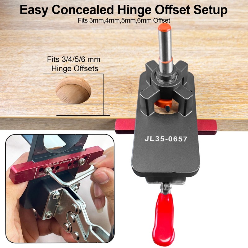 35mm Concealed Hinge Jig, Cabinet Hinge Jig, Aluminum Alloy Accurate Locking Cabinet Hinge Hole Drilling Jig with Adjustable 3-6mm Edge, Household Woodworking Tools for Door Cabinets Hinges Mounting