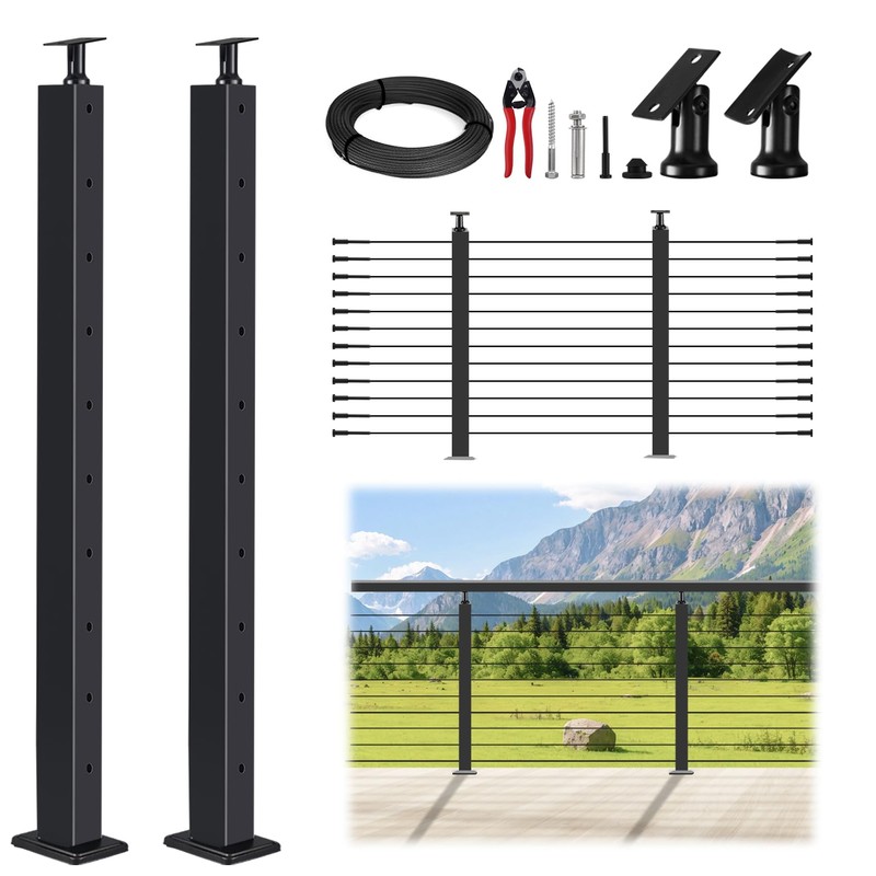 - 【Complete Kit】The 36" level Cable Railing Kit includes all necessary installation components for a clean, modern look. This set features 2 heavy-duty posts, 4 adjustable top cable posts, 80ft of T316 stainless steel invisible cable, adhesive washers, and a cable cutter—everything you need for a secure, low-maintenance railing system.