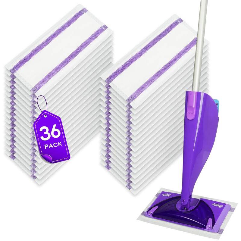 36 Count Disposable Mop Pad Refills Compatible with Swiffer WetJet - Thickened Multi-Surface Absorbent Pads - Spray Mop Replacement for Hardwood Tile Laminate Floors - Bathroom & Kitchen Cleaning