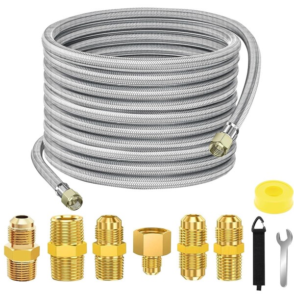 - Extended Reach: Our 36 FT propane hose extension allows you to extend the reach of your propane appliances, No need to carry extra propane gas tanks, you can connect your stove/grill directly to the Low-pressure propane supply on the RV, giving you the flexibility to set up your grill, heater, or other outdoor equipment at a greater distance from your propane source.