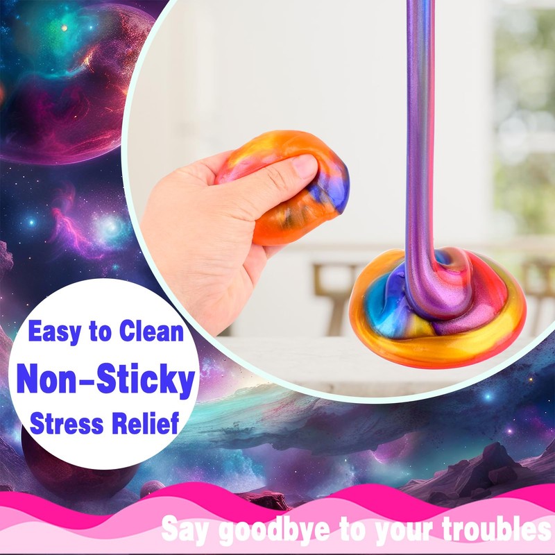 - FUN AND STRESS RELIEF:Our galaxy slime balls are slightly bouncy, smooth and fun, perfect for stress relief toys for adults and kids