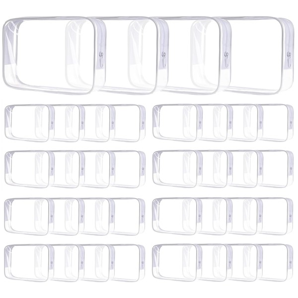 36 Pcs Clear Makeup Bag, PVC Transparent Travel Toiletry Bags, Portable Small Zipper Cosmetic Pouches, Pencil Pouch Cases for Toiletries Essentials Women Men Kids - White Edges