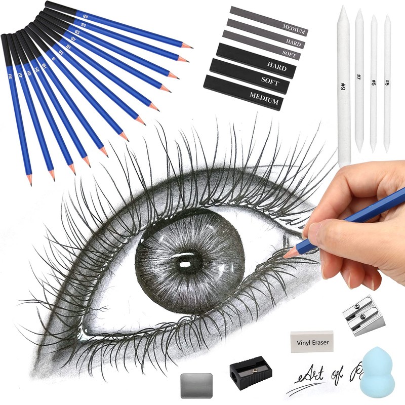 - Wide range of sketch pencils - graphite pencils from 2H, 3H, 4H, 5H, HB, B, 2B, 3B, 4B, 5B, 6B to 8B for exact drawing lines, graphite pencils with different hardness: soft, medium, hard. With art pens for drawing and shading, you can develop technical skills. Perfect for kids art supplies as well as adults