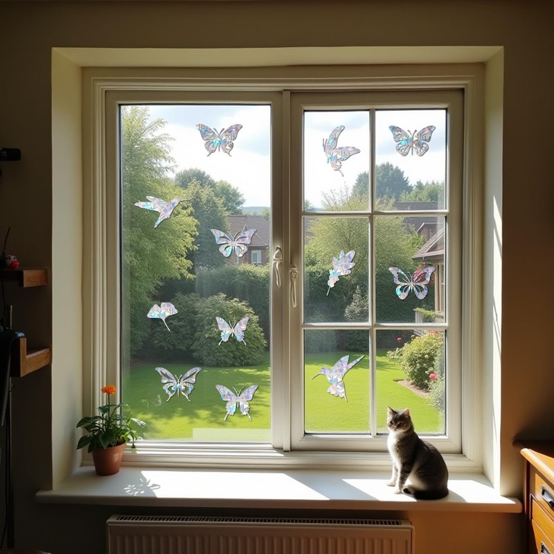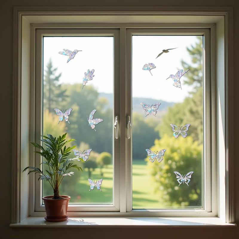 36 pieces anti-collision prism window stickers for bird strikes, prevent glass collisions, stop birds flying in windows, butterfly bird leaf shaped