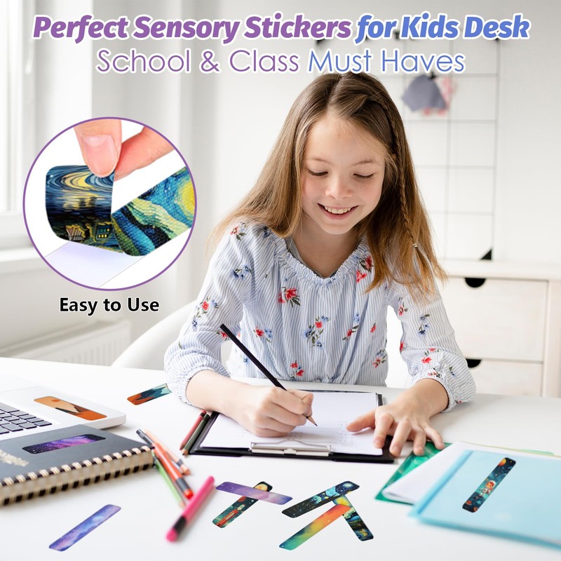 - 【Waterproof and Multifunctional】 Our calm stickers are waterproof, tear-resistant, and stretch-resistant. They are versatile, reusable, and residue-free, making them ideal anxiety relief item for students, and adult sensory items. you can stick them on phones, computers, notebooks, cups, steering wheels, desktops, classroom supplies for teachers middle school, etc.anywhere you like.