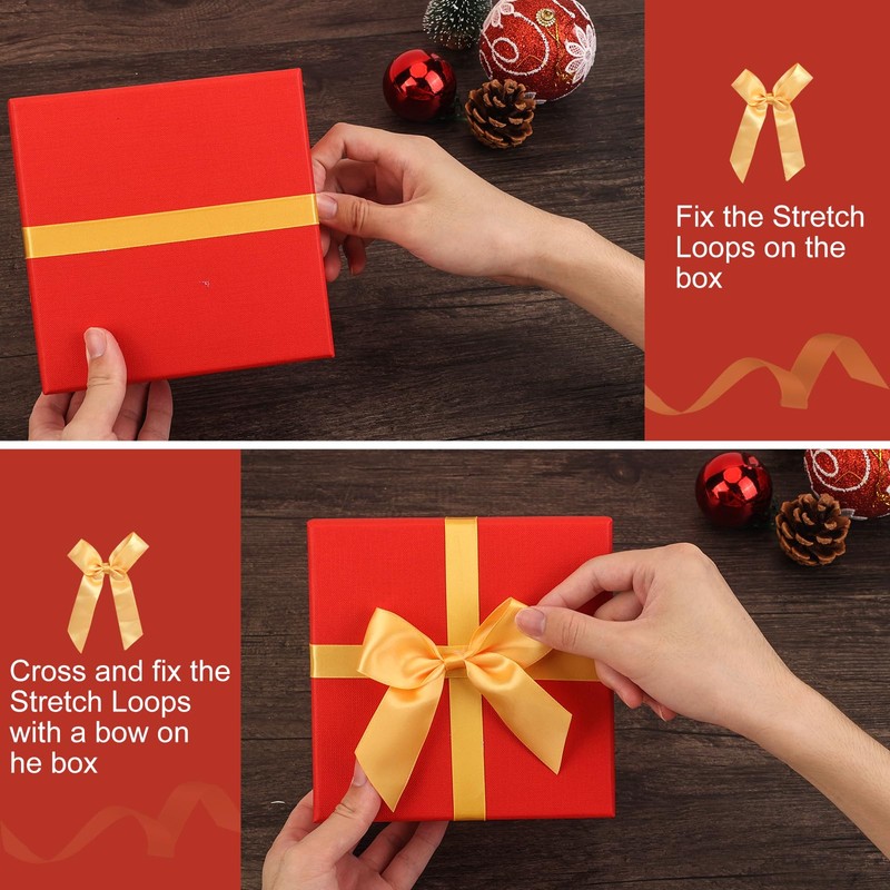 - 【size】 With 4 different sized Stretch Loops with bows to choose from, you can easily find the perfect fit for any gift boxes Use them individually or together to creatively present your presents. Designed to accommodate a variety of gifts