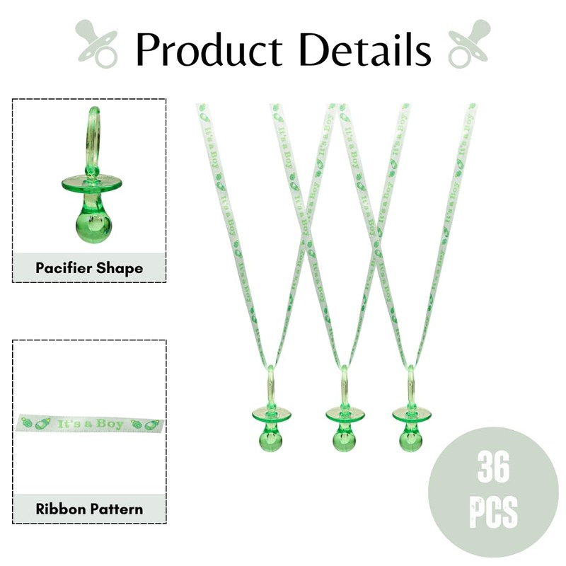 36 Pieces It's a Boy Baby Shower Pacifiers Necklace Acrylic Baby Party Favors Charm Pacifiers Necklace Baby Shower Party Decorations Table Scatter (Green)