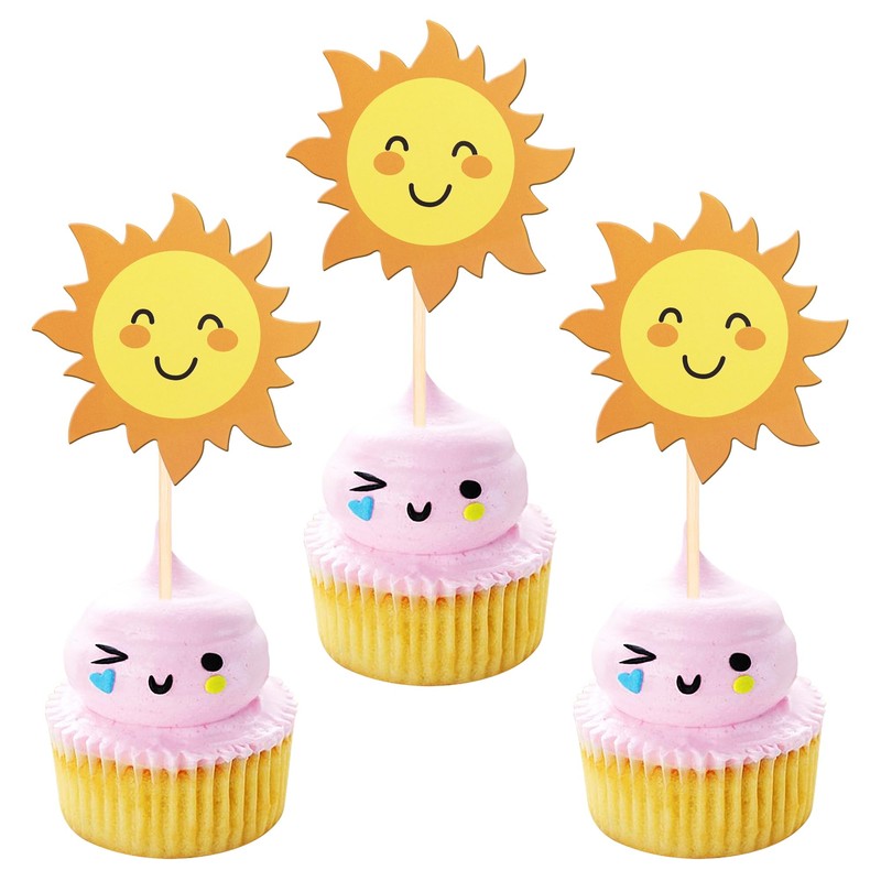 - Amplios usos: Estos adornos para cupcakes son perfectos para fiestas temáticas de sol con cara de sonrisa, eres mi fiesta temática de sol, fiesta temática de baby shower, decoraciones de cupcakes con temática de cumpleaños para niños y niñas, pueden hacer que tu cupcake sea más atractivo y traer la diversión a tu fiesta. También puedes aplicarlos para helados, frutas, galletas y otros postres.