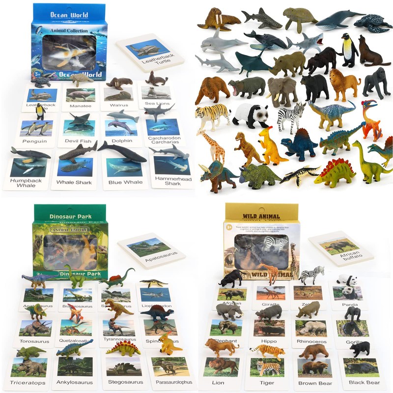 36 Preschool Science Toys - Montessori Materials with Animal Matching Figures Flash Cards, Animals Figurines for Toddlers(Dinosaur Zoo Sea)