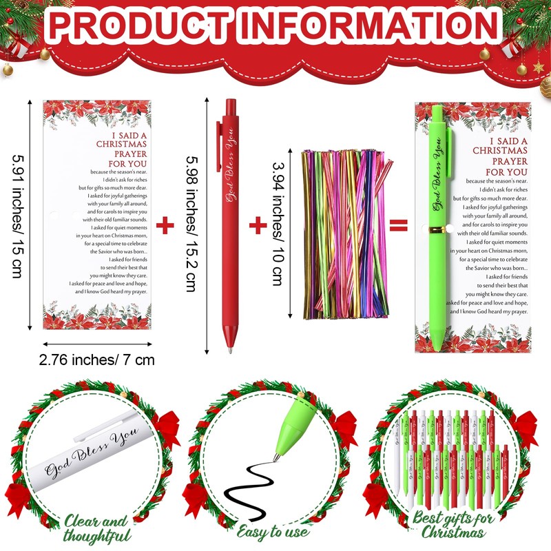 - Christmas Religious Features: the Christian pens bulk come in vibrant festive colors of red, green and white with text of [god bless you], promoting a spiritual and festive aura; The poinsettia pattern along with blessing messages on the card resonates with the Christmas spirit and conveys heartfelt wishes