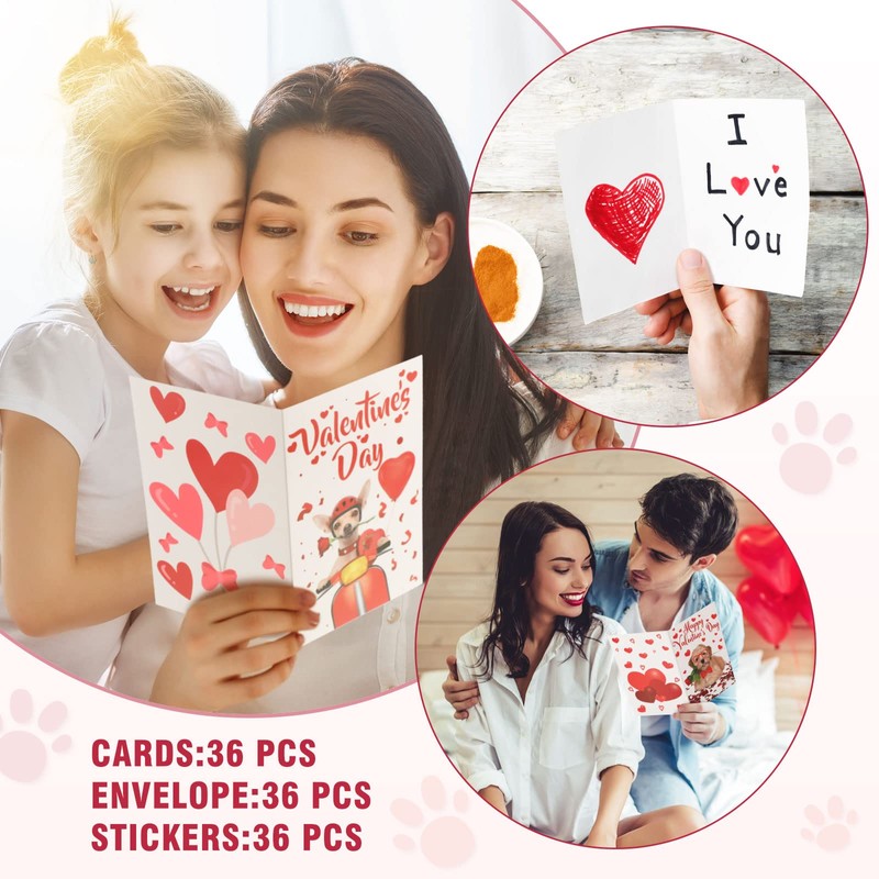 - Fit Most Significant Occasions: these cute dog valentines day cards are printed with words that can convey your love to your friends, families, classmates, colleagues and so on, warm and meaningful gifts on Valentine's Day, anniversary and other important holidays