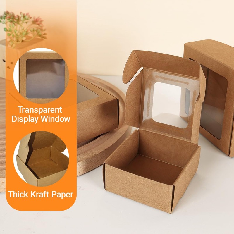 36 Stück Kraftpapierbox mit Durchsichtigen Fenstern, 7,5 X 7,5 X 3 cm, Quadratische Kleine Schachtel Kleine mit Sichtfenster, für Weihnachten, Hochzeit, Kekse, Kuchen, Dessert, Geschenke, SüßIgkeiten