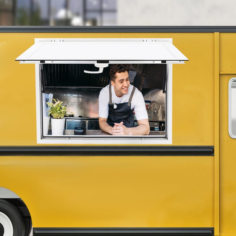 - ✅【A WIDE RANGE OF APPLICATION】 Food truck equipment that can let you have quick and efficient access to your customers. Concession sliding window is widely used in the food service industry and is ideal for food trucks, motor homes, concession stands, catering trucks, barbecue trailers, mobile catering units, and more.