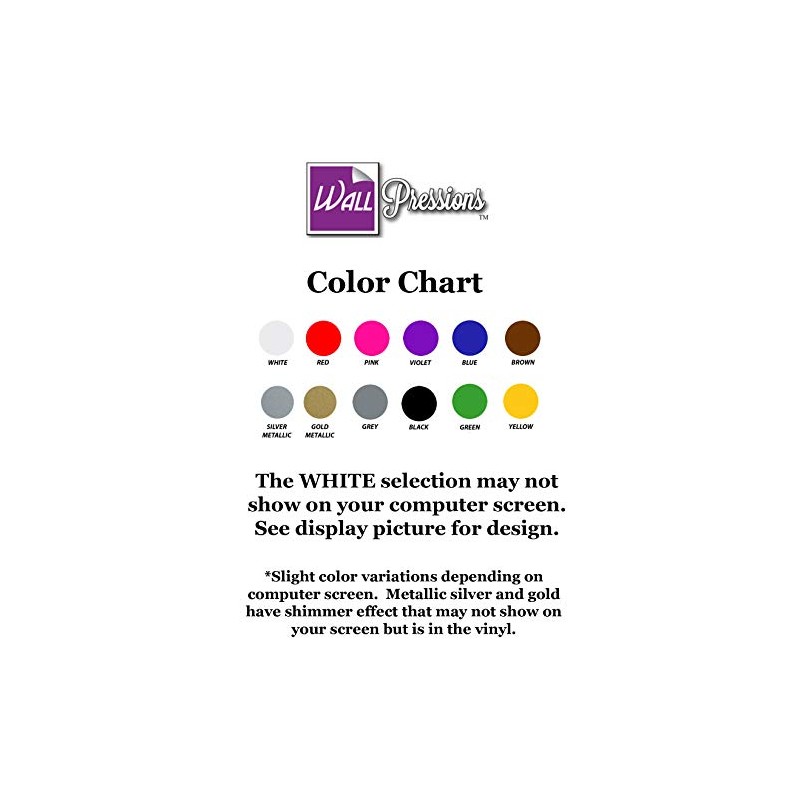 Our unique designed wall decal is the perfect addition to any room. The decal colors are a matte finish which will look like a painted on wall mural once applied. The decal can be applied to slightly textured or smooth walls and can be applied to any type of smooth surface such as glass, mirror, finished wood, canvas, etc. Easy application and video tutorial instructions are included. Our DIY decal comes ready to apply with application tape intact for easy setup. Image shown for display purpose only. We use Oracal brand indoor vinyl. It is specifically made for indoor use and will not damage walls and can last up to 7 years. It is easy to remove by just peeling it off when done, but cannot be reused. It is a great way to decorate when you are unable to paint such as apartments as it will not damage walls when removed. All products are designed and made right here in the USA. Copyright and Trademark by WallPressions.