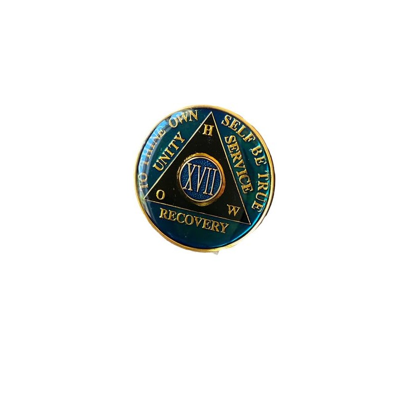 • 36 Year AA Medallion GREENHOW Tri-Plate Sobriety Chip. Glass Like Epoxy Dome with Serenity Prayer on back. 34x3mm Size