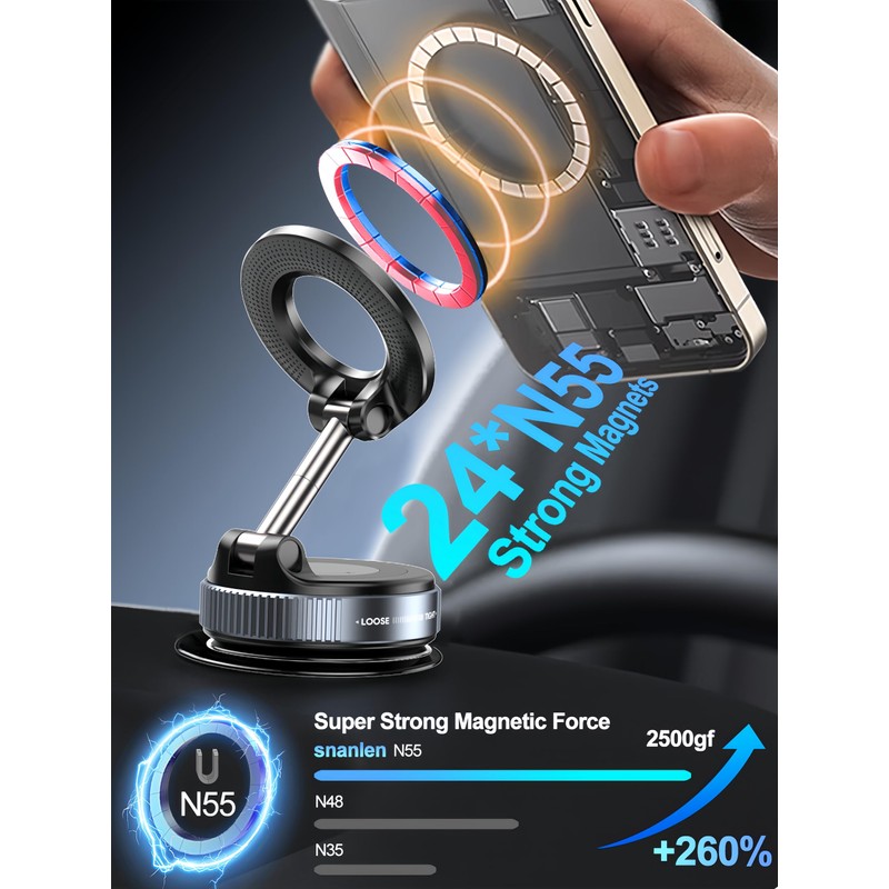 snanlen Upgraded 360° Vacuum Magnetic Phone Holder, Magnetic Car Phone Mount, Hands-Free Suction Cup Phone Holder for Car/Gym/Mirror/Shower, Car Mount Compatible with iPhone 16 Pro Max/Android