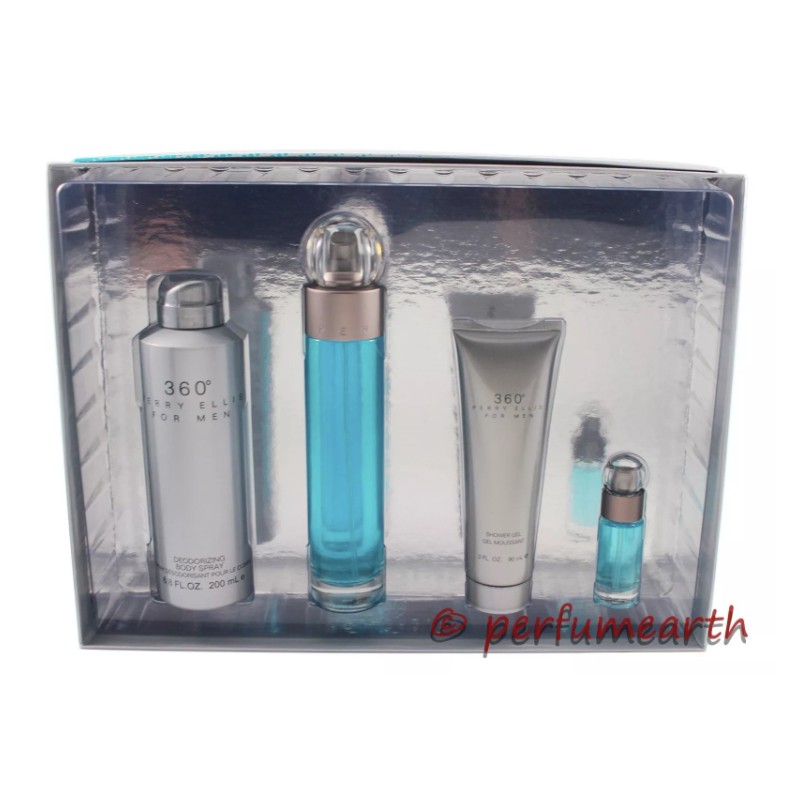 360 By Perry Ellis 4 Pcs Gift Set 3.4oz Edt Spray For Men New In Box