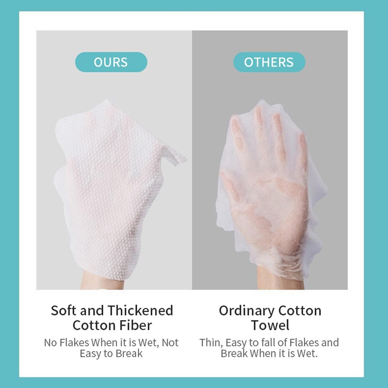 - 【Pure Cotton High Quality Material】This disposable facial cleansing towel is made of 100% cotton, made of natural plant fiber, high quality long-staple cotton, skin-friendly and comfortable, clean and hygienic. Tissue toughness, do not fall off the flakes. Very good water absorption, can be repeatedly rubbed, pulled hard, facial cleansing towels are not easy to break.