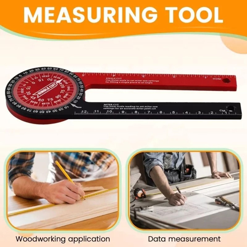 - Unique Design: The dual-colour layout enhances visibility and readability. A smooth 360-degree rotation, allowing for precise measurement of both inside and outside angles.
