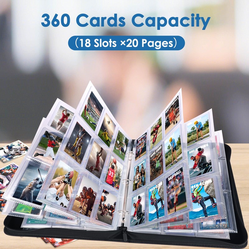 - Package Include: 9-pockets toploaders binder comes with 360 card pockets, including 20 removable card sleeves (double-side pocket).It will hold and protect more of your valuable and cherished cards. Trading Cards are NOT INCLUDED.