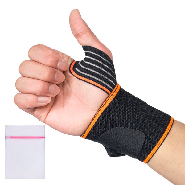 360 RELIEF 1 Pack Adjustable Wrist Support Wrap with Wide Thumb Loop Straps Compression Bandage | Gym, Workout, Training | Black with Mesh Laundry Bag