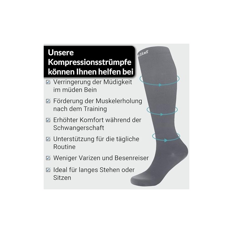 - Ideal bei wunden Füßen und Beinschmerzen: 360 Relief Stützstrümpfe können Ihnen helfen, Beinschmerzen zu lindern und fördert die Erholung der Muskeln. 15-20 mmHg Milder Druck mit fester Unterstützung um Ihre Waden reduziert das Risiko der Beinkrämpfe