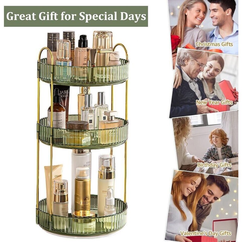 - Easy to reach, easier to organize. 360° rotatable design, visualized storage for quick access, making organization easier. Whether it's makeup or skincare products, bottles and jars, all in one place. I'm responsible for storage, you're responsible for beauty.