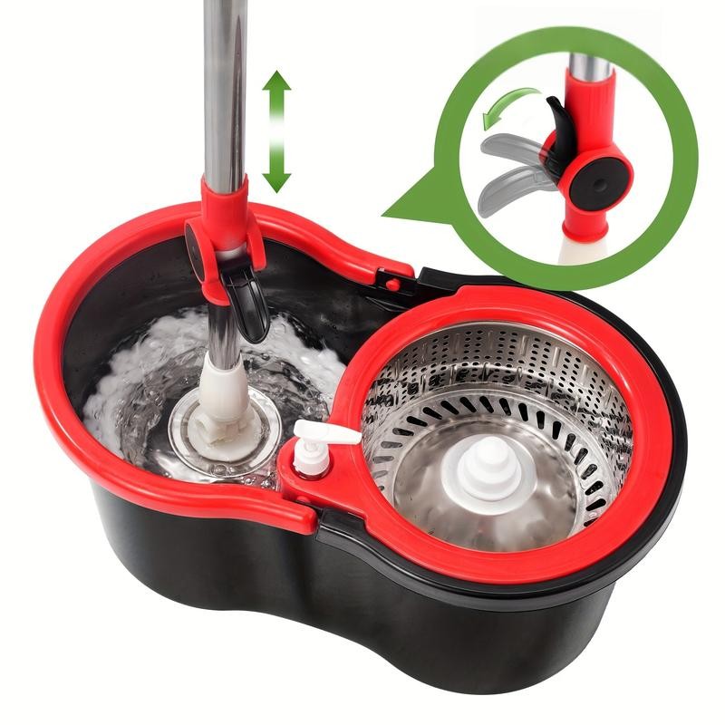 - 0:00 0:47 • Keep your floors spotless with this360° Spin Mop and Bucket Cleaning System.Designed for convenience and efficiency, this set includes adurable wringer bucket, 3 reusable microfiber mop heads, and a 61" adjustable stainless steel handle.The 360° rotating mop head easily reaches corners, edges, and under furniture, making it perfect for deep cleaning your home. • The built-inhands-free wringerkeeps your hands dry while saving time and effort.Themicrofiber mop padsare highly absorbent, washable, and eco-friendly, ensuring long-lasting performance.Itsadjustable stainless steel handleis rust-resistant, sturdy, and comfortable for users of different heights. • Ideal for use inkitchens, bathrooms, living rooms, offices, and other floor typesincluding tile, wood, laminate, vinyl, and marble.This spin mop and bucket system offers a reliable, efficient, and easy solution for everyday floor cleaning. • Key Features360° Rotating Mop Head– Cleans corners and hard-to-reach spaces with ease.Hands-Free Wringer Bucket– Keeps hands dry and reduces cleaning time.61" Adjustable Stainless Steel Handle– Strong, rust-resistant, and extendable for comfort.3 Reusable Microfiber Mop Heads– Super absorbent, washable, and eco-friendly.Multi-Surface Cleaning– Suitable for tile, wood, marble, laminate, and vinyl floors in kitchens, bathrooms, and living rooms.